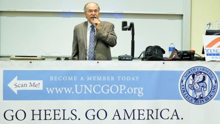 Horowitz recently spoke to "an audience of about 100 people" at the University of North Carolina at Chapel Hill, a campus with about 30,000 students and 3,600 faculty. He was invited by the College Republicans.
